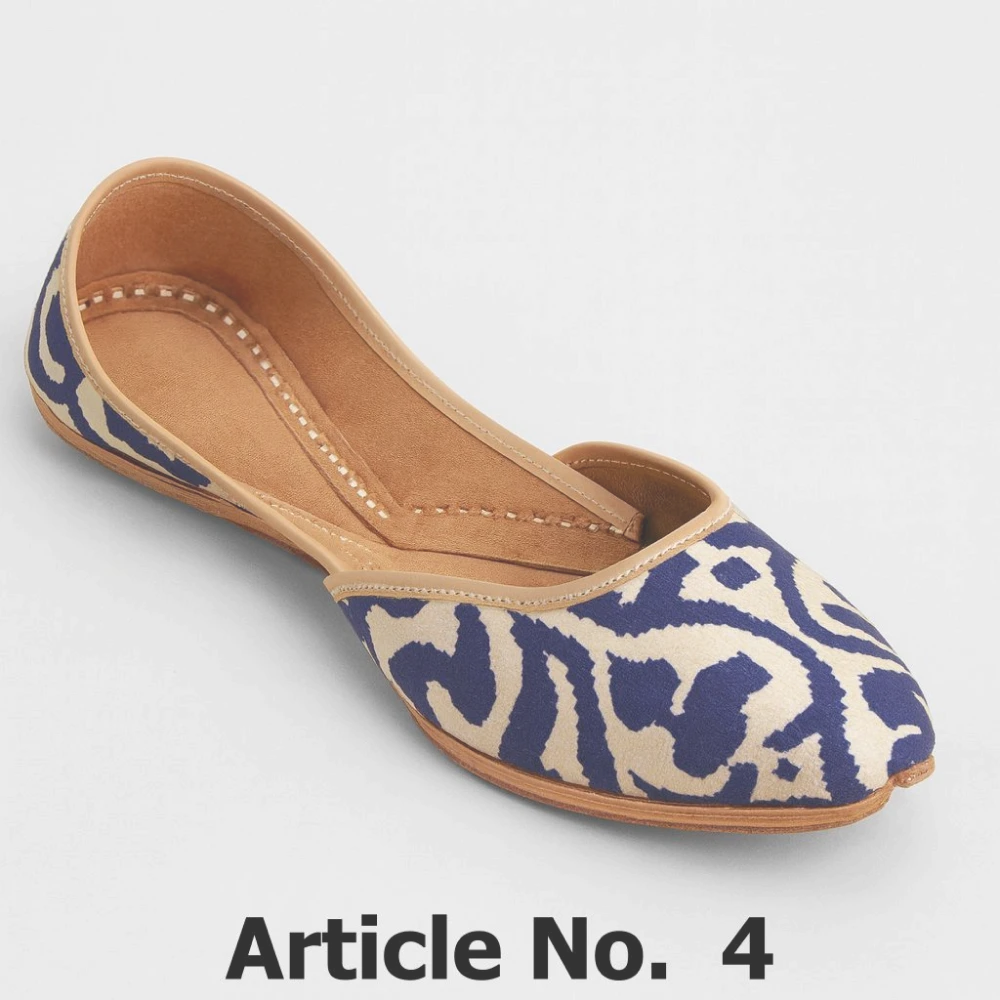 Ada by Sakis — a handmade flat designed for women who love to stand out while staying comfortable. It features a striking deep-indigo abstract pattern against a soft neutral base that seamlessly blends contemporary style with centuries-old craftsmanship.